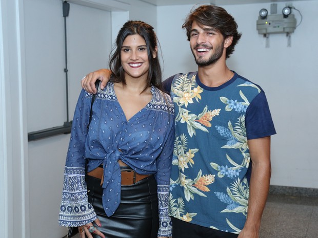 Atriz Giulia Costa e Brenno Leone se beijam durante show no Rio