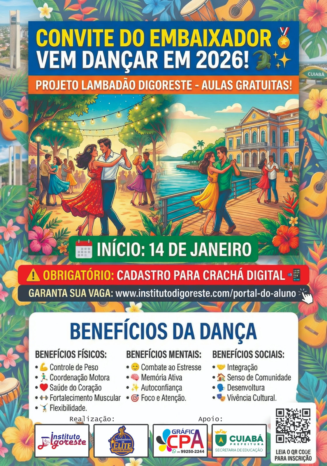 Cultura DESTAQUE 4 Complexo Biocultural do Porto oferece aulas gratuitas de rasqueado e lambadão Por José San Martin Camiña Neto As aulas gratuitas de rasqueado e lambadão realizadas no Complexo Biocultural do Porto vêm... por Redação 27 de janeiro de 2026 0 Comentário
