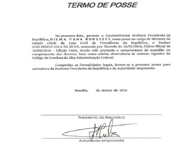 Política Planalto divulga termo de posse sem a assinatura de Dilma ENTENDA por Redação 17 de março de 2016 0 Comentário