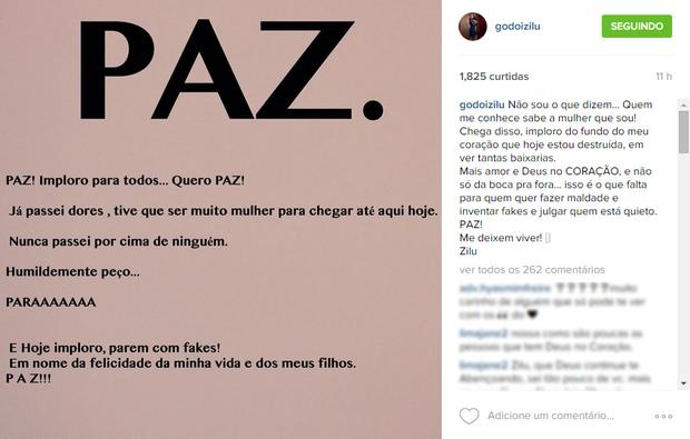 Variedades Zilu desabafa: ‘Estou destruída em ver tantas baixarias’ POLÊMICA por Redação 20 de agosto de 2015 0 Comentário