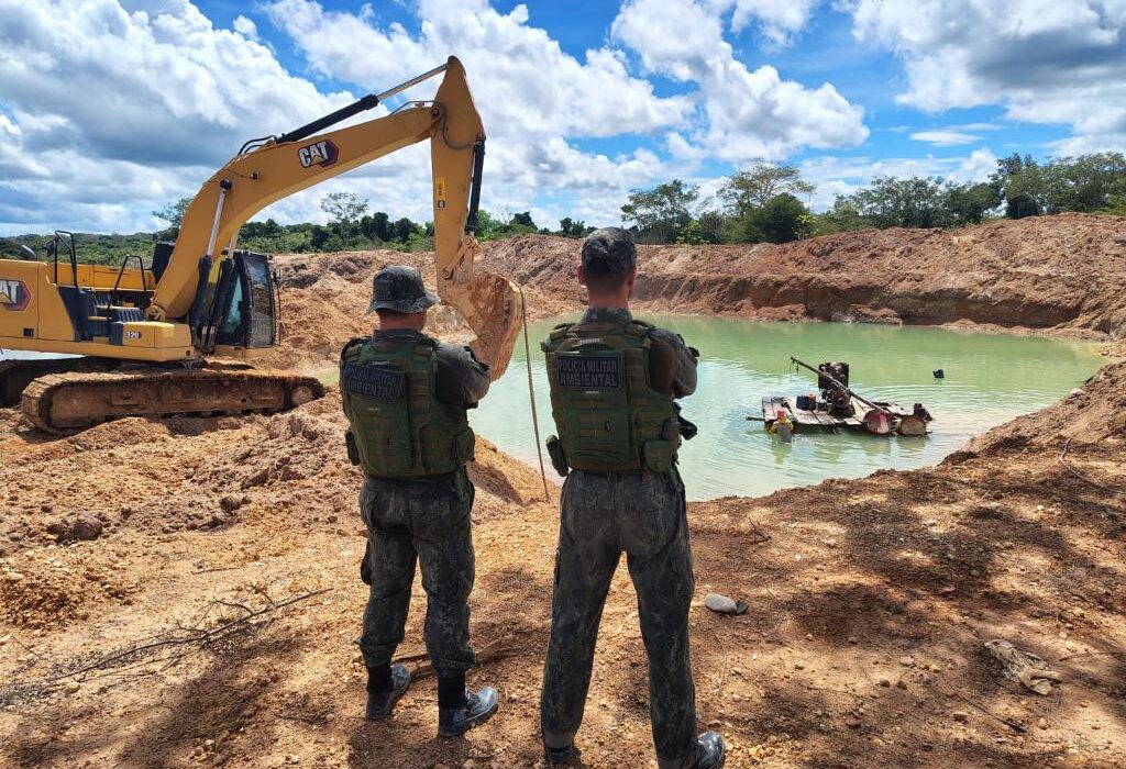 Na região informada, os policiais militares flagraram o garimpo ilegal em pleno funcionamento com máquinas, tratores e três motores estacionários realizando as atividades de extração ilegal de minério.