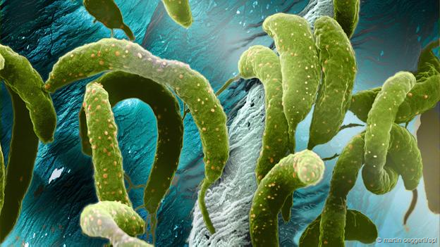 Essa bactéria com um corpo em forma de saca-rolhas se alinha ao campo magnético da Terra. Elas tendem a viver nos sedimentos do fundo de um leito de água e preferem um nível de oxigênio bem específico: algum, mas não muito.