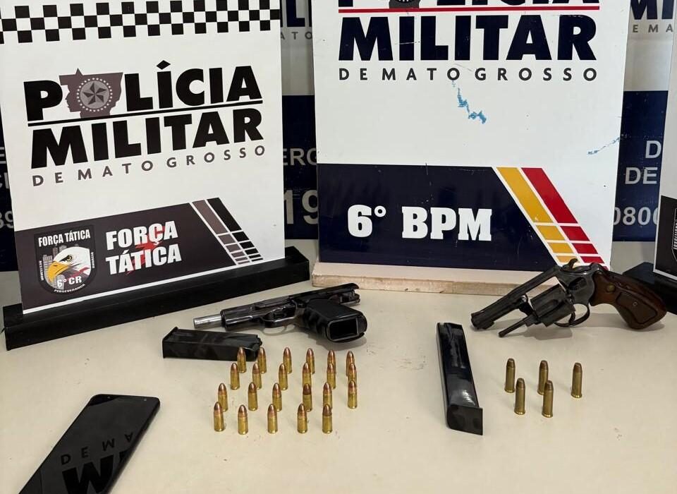 Policiais militares do 6º Batalhão apreenderam, nesta quinta-feira (15.1), um adolescente, de 16 anos e prenderam um homem, de 20 anos, suspeitos por provocarem incêndio em uma residência e porte ilegal de arma, em Cáceres (220 km de Cuiabá). As equipes recolheram um revólver, uma pistola, dois carregadores e 28 munições.