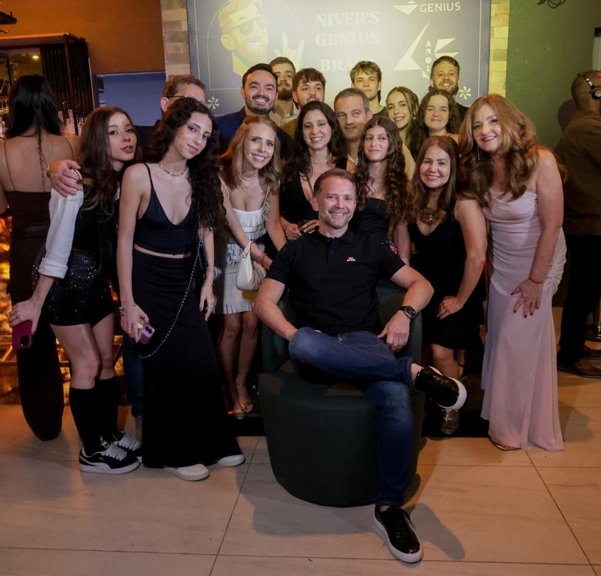 “Foto de Stephany Siqueira (Genius Publicidade), registrando Brasa ao lado de amigos e familiares / Divulgação Genius Publicidade”