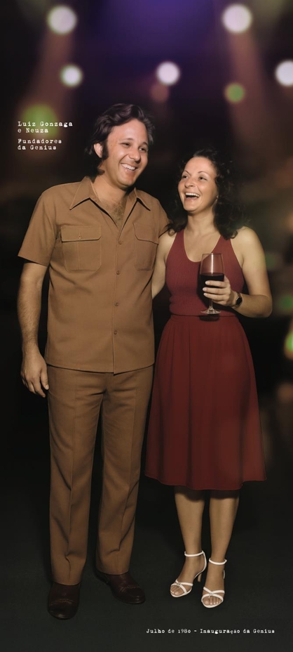“Imagem gerada por IA com base em retratos reais de Luiz Gonzaga Rodrigues e Neusa Lula Rodrigues, fundadores da Genius Publicidade / Divulgação Genius Publicidade”