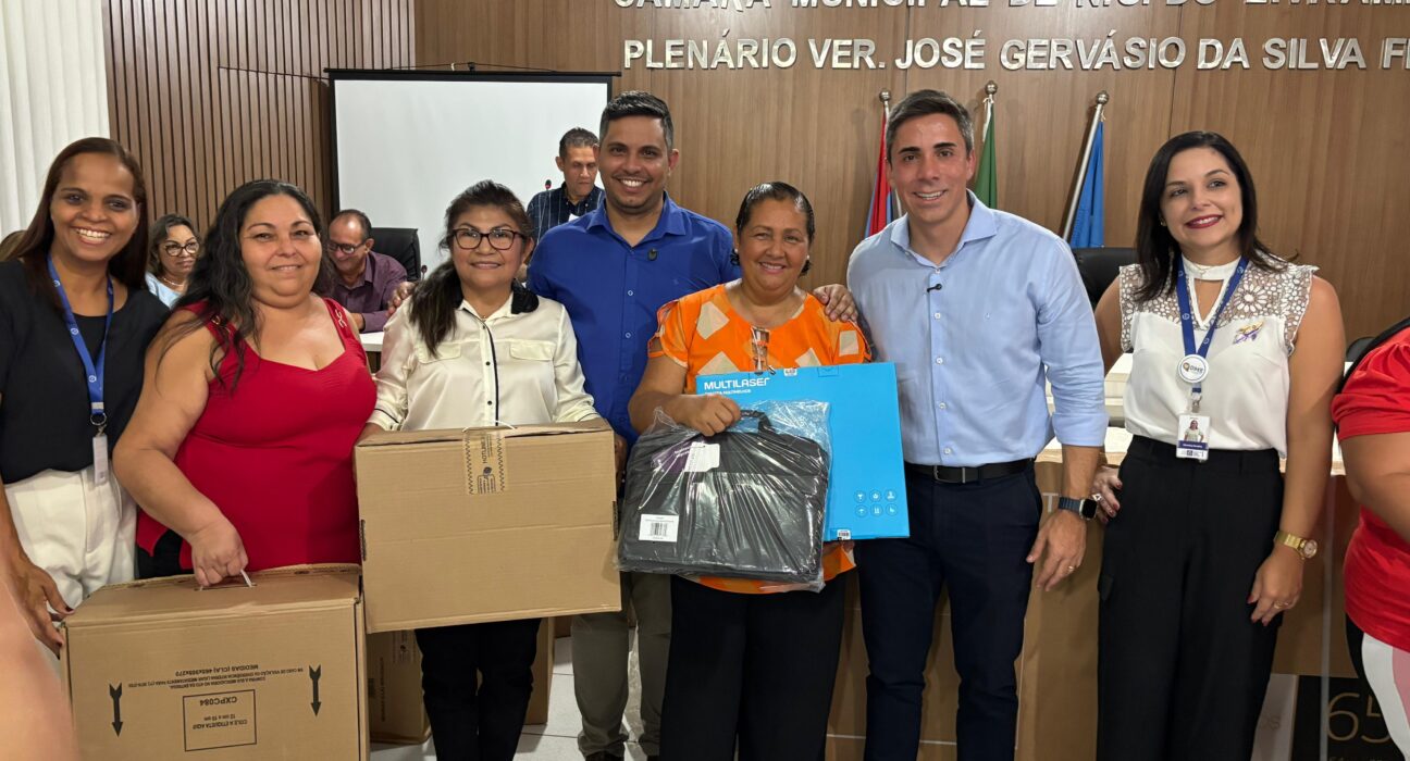 Durante a ação, foram entregues sete televisores, que irão atender as turmas do 5º ano, e 37 notebooks para professores efetivos, que atuam diretamente em sala de aula.