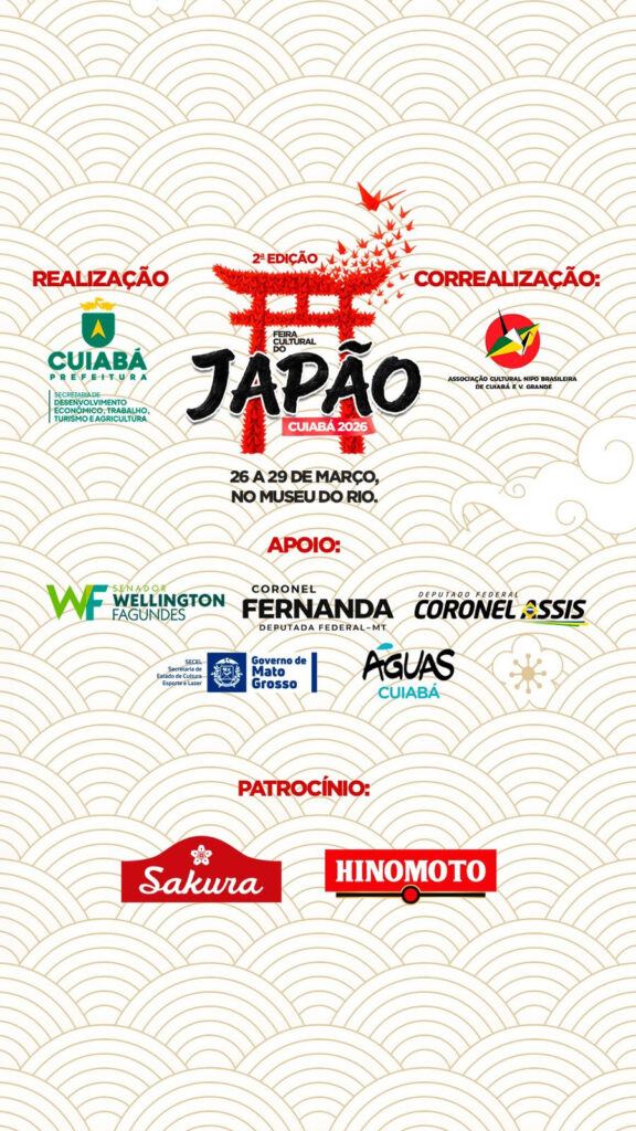 Realizada pela Associação Nipo Cuiabá com apoio da Prefeitura de Cuiabá, por meio da Secretaria Municipal de Desenvolvimento Econômico, Trabalho, Turismo e Agricultura, a feira reforça o compromisso com a valorização da diversidade cultural e o fortalecimento do turismo e da economia local.