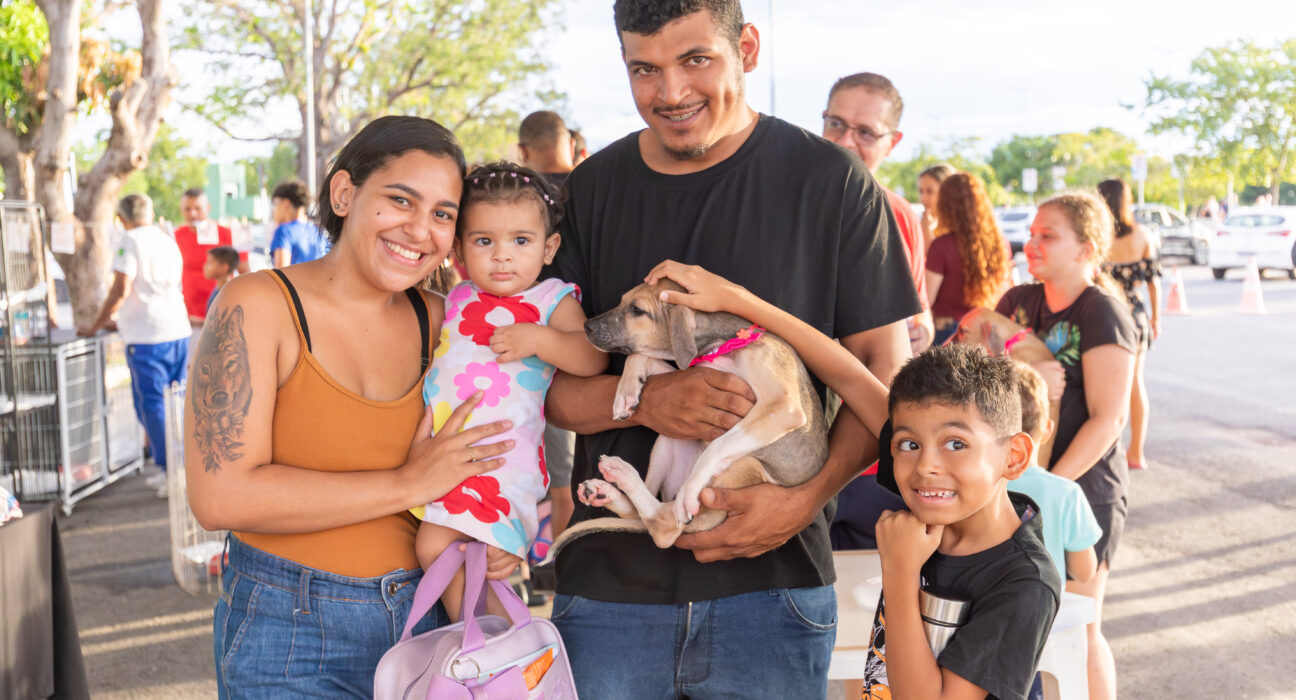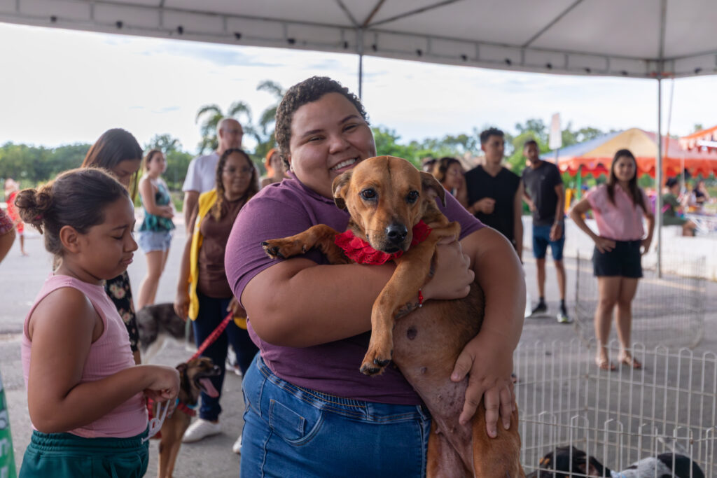 Entre as histórias que nasceram na feira está a da jovem Regislayne, de 24 anos, moradora do Residencial Sucuri. Ela decidiu participar do evento após ver a divulgação nas redes sociais da Prefeitura. “Minha filha vai fazer um ano e é apaixonada por animais. Quando chegamos aqui, ela se encantou por este cãozinho e começou a chamá-lo. A conexão foi imediata”, contou.