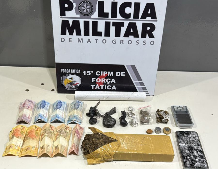 Equipes da Força Tática do 2º Comando Regional prenderam um homem, de 25 anos, e uma mulher, de 23 anos, por tráfico ilícito de drogas, em duas ações registradas no final da tarde desta terça-feira (20.1), em Várzea Grande. Nas ocorrências, a PM apreendeu tabletes e mais de 100 porções de maconha e cocaína.