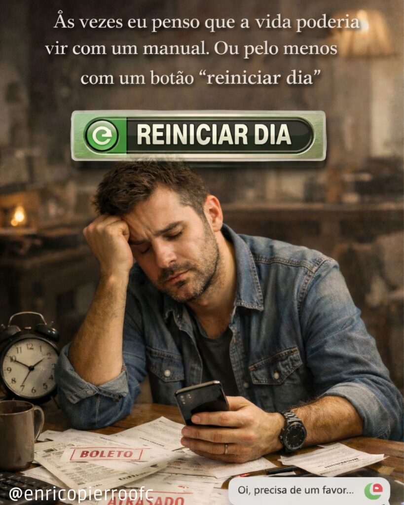 Às vezes eu penso que a vida poderia vir com um manual. Ou pelo menos com um botão “reiniciar dia”, igual ao videogame. Mas não: ela prefere vir com boletos, imprevistos e aquela pessoa que te manda mensagem só quando precisa — sempre no pior momento possível, claro.