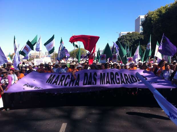 Trabalhadoras rurais realizaram na manhã desta quarta-feira (12) uma passeata entre o Estádio Mané Garrincha e o Congresso Nacional em protesto por mais educação e mais políticas públicas para o campo. A manifestação, conhecida como Marcha das Margaridas, ocorre de quatro em quatro anos. Por causa do evento, o trânsito na área central de Brasília sofreu alterações.