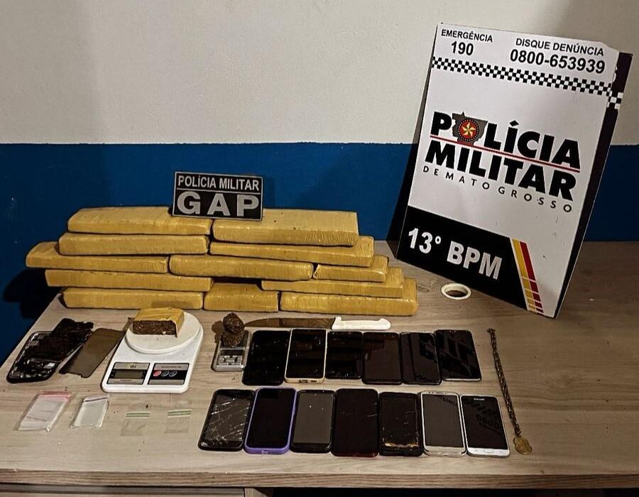 Durante a abordagem, os policiais localizaram um homem e uma mulher escondidos no quarto. Em buscas no interior do imóvel, a equipe encontrou dez tabletes de maconha, além de material de preparo e um celular que os suspeitos danificaram.