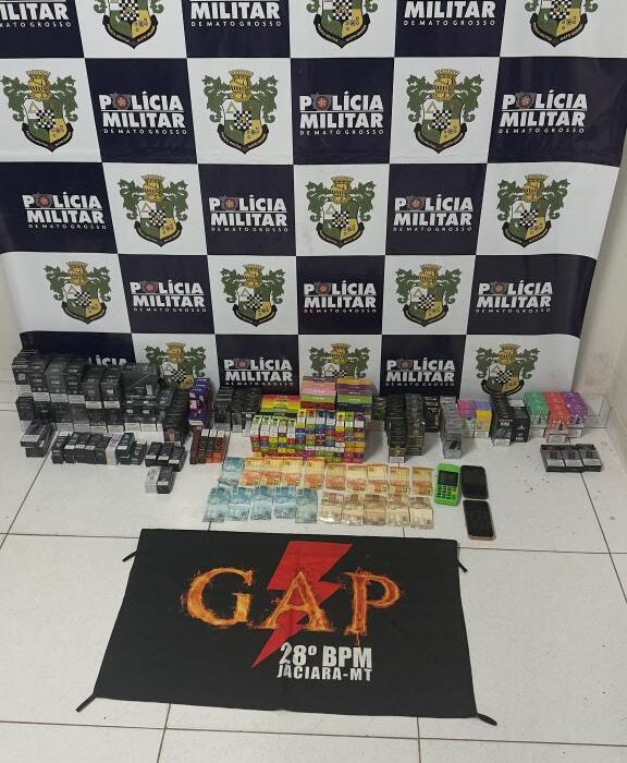 Policiais militares do Grupo de Apoio (GAP) do 28º Batalhão prenderam dois homens, de 32 e 20 anos, pelo crime de contrabando, na noite desta sexta-feira (23.1), em Jaciara. Na ação, a PM apreendeu 397 cigarros eletrônicos que eram vendidos na cidade.
