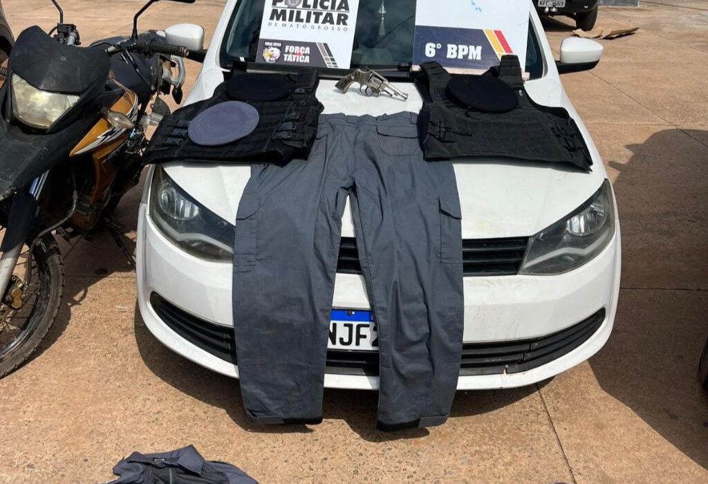 Posteriormente, os suspeitos também indicaram o endereço de uma residência utilizada como ponto de apoio pela facção criminosa. As equipes deslocaram até o local, onde foram encontrados diversos materiais de uso das forças de segurança pública estadual, entre eles fardamentos e coletes balísticos.